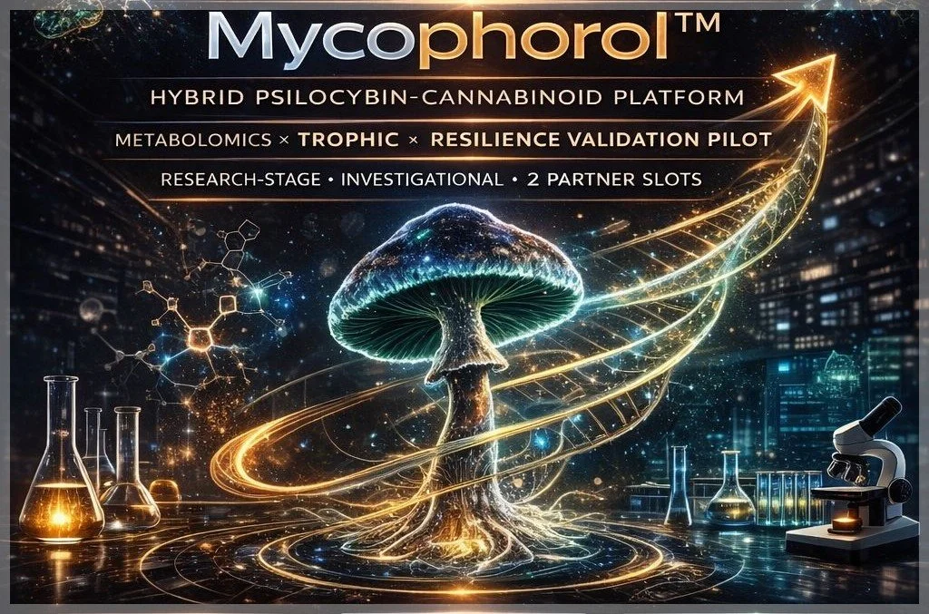 Research-stage investigational platform drawing structural and biological inspiration from psilocybin pharmacology and fungal metabolite chemistry, including hericenone-related biology. Intended to explore neuroresilience-related pathways through measurable endpoints, with focus on neurotrophic signaling, oxidative-stress response, and neuroimmune tone.